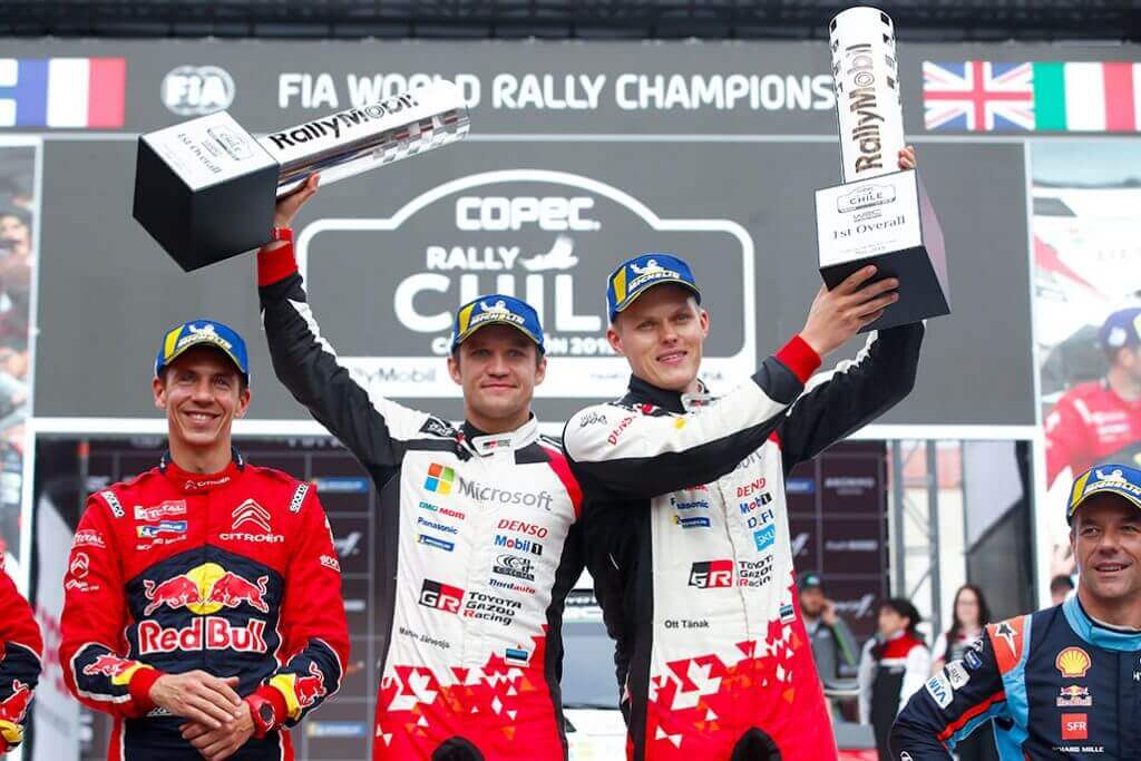 Ott Tänak és a TOYOTA GAZOO rally csapata megszerezte második győzelmét a Rally Világbajnokság (WRC) idei idényében. Az észt pilóta az első alkalommal megrendezett Chile Rallyn diadalmaskodott. Ezzel a második helyen áll a pilóták világbajnoki mezőnyében.